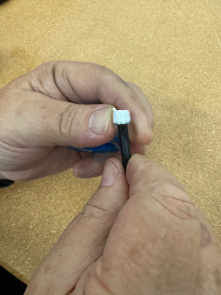 Install 90-degree fitting with sealant tape (if using) and Schrader valve.